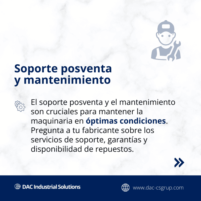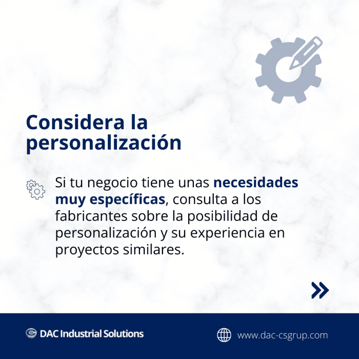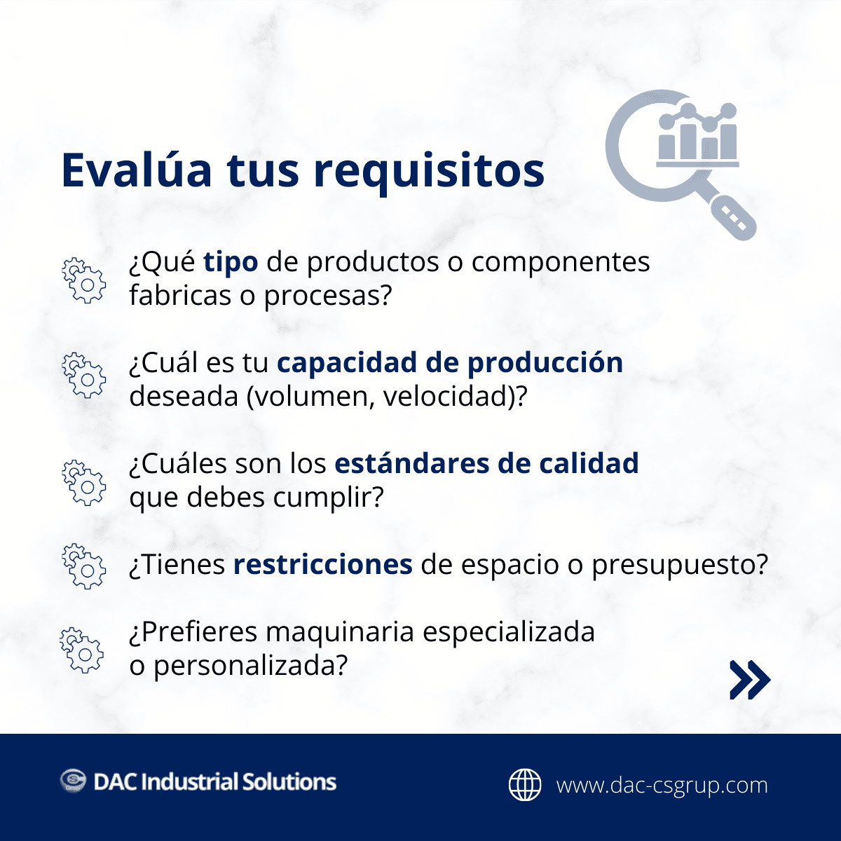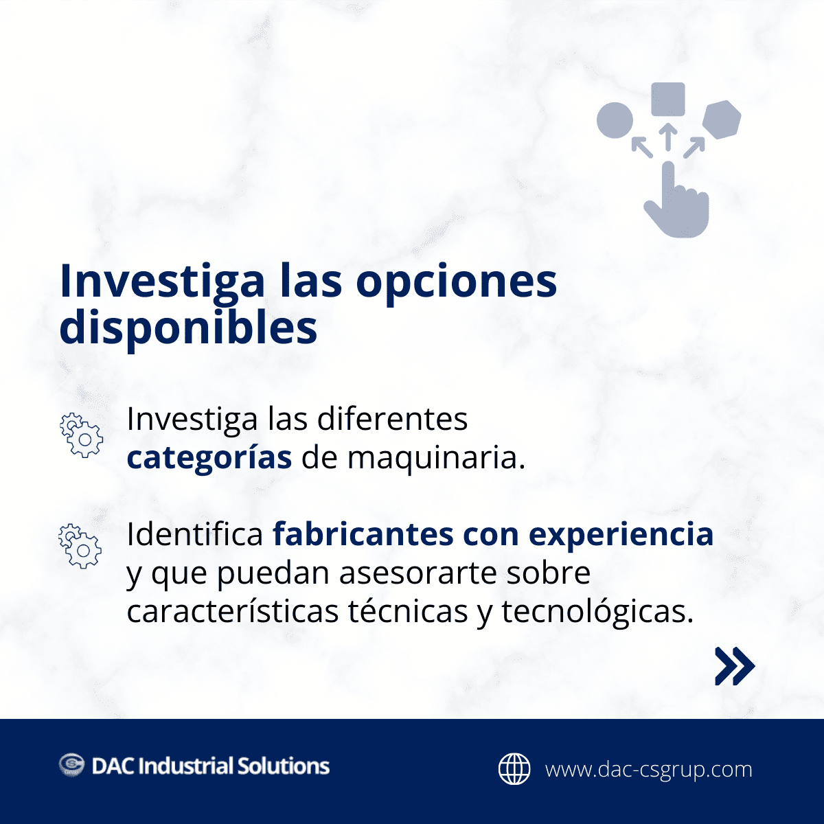 Choosing the machinery best suited to each industry is not just a technical question: it is a strategic decision that can set the course of the company for years to come. The investment involved in acquiring the equipment necessary to carry out any industrial activity often involves a great economic effort. Therefore, it is necessary to make a reasoned decision. At DAC Industrial, we accompany our customers in this process, helping them to identify what type of machinery best suits their production, operational and economic needs.